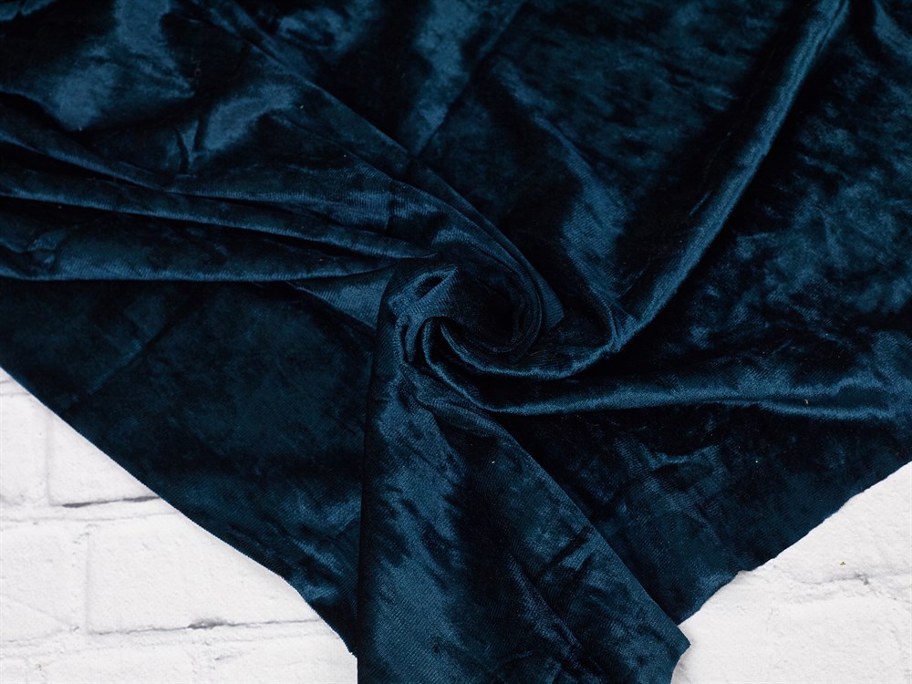Бархат крэш — это мягкая, стрейчевая ворсистая ткань с эффектом «мятой» или хаотично помятой фактуры, которую получают путем специальной обработки, например, сжатия или механического скручивания влажного полотна. Благодаря этому ткань выглядит эффектно, с уникальной «мраморной» текстурой, блеском и игрой света. Подходит для пошива как повседневной, так и вечерней одежды, включая платья, костюмы, халаты и домашнюю одежду.