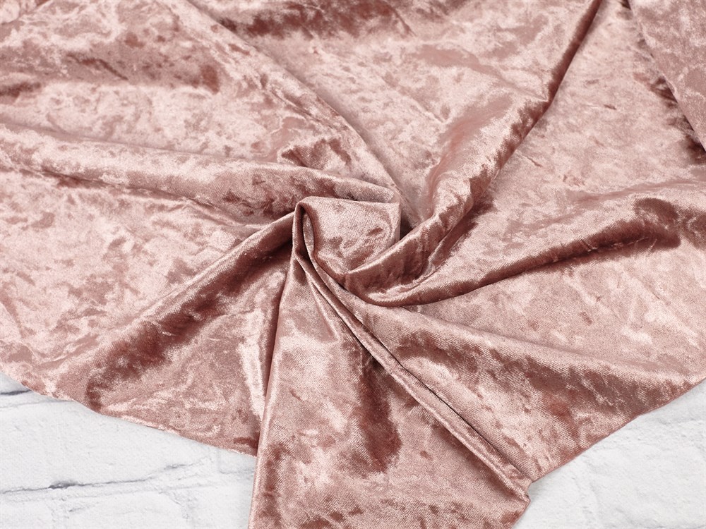 Бархат крэш — это мягкая, стрейчевая ворсистая ткань с эффектом «мятой» или хаотично помятой фактуры, которую получают путем специальной обработки, например, сжатия или механического скручивания влажного полотна. Благодаря этому ткань выглядит эффектно, с уникальной «мраморной» текстурой, блеском и игрой света. Подходит для пошива как повседневной, так и вечерней одежды, включая платья, костюмы, халаты и домашнюю одежду.
