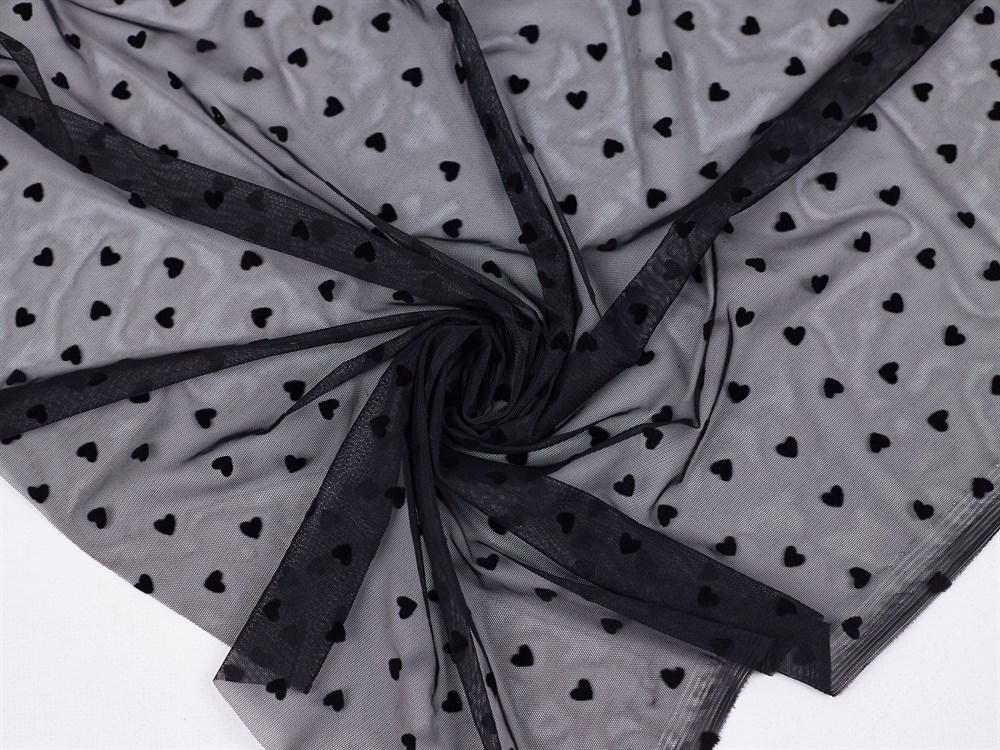 Эластичная сетка с флоковыми сердечками, цв. черный+черный