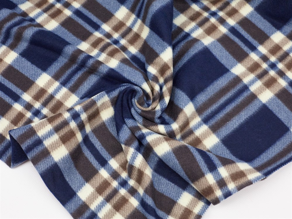 Флис антипилинг односторонний, принт "Клетка", цв. синий+коричневый