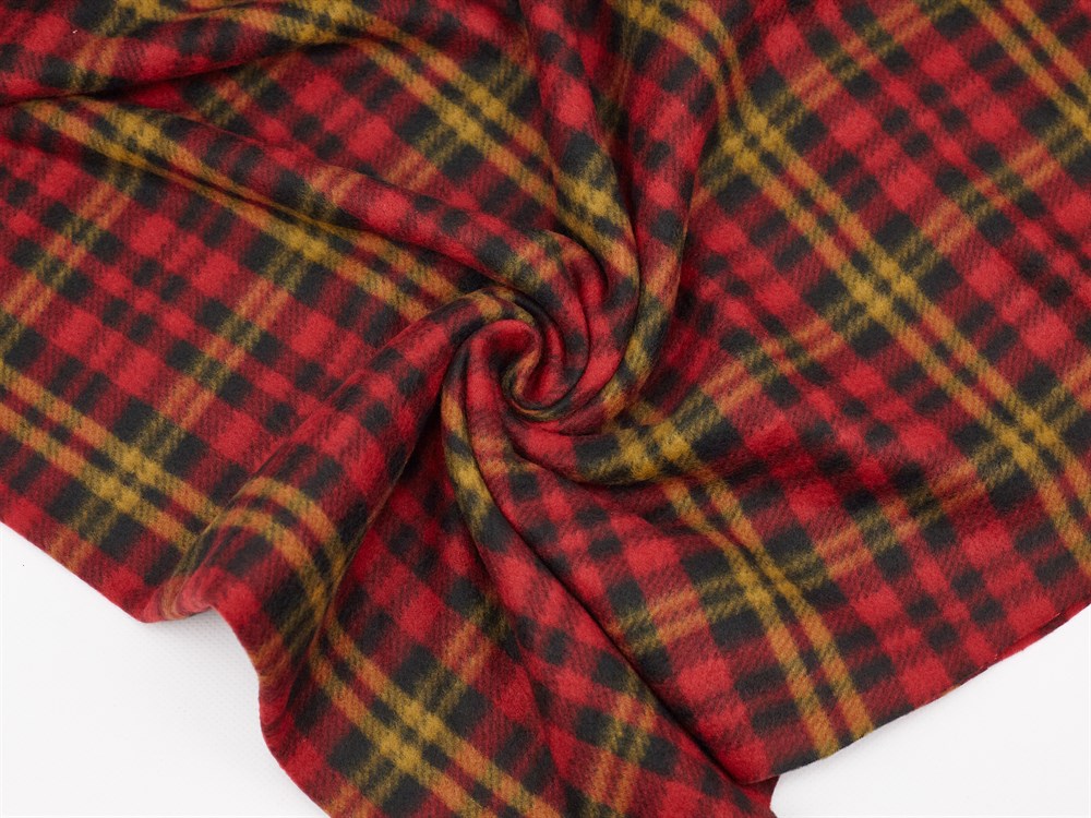 Флис антипилинг односторонний, принт "Клетка", цв. желто-бордовый