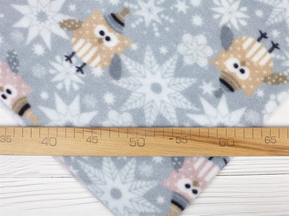 Флис антипилинг, принт "Совушки на сером"