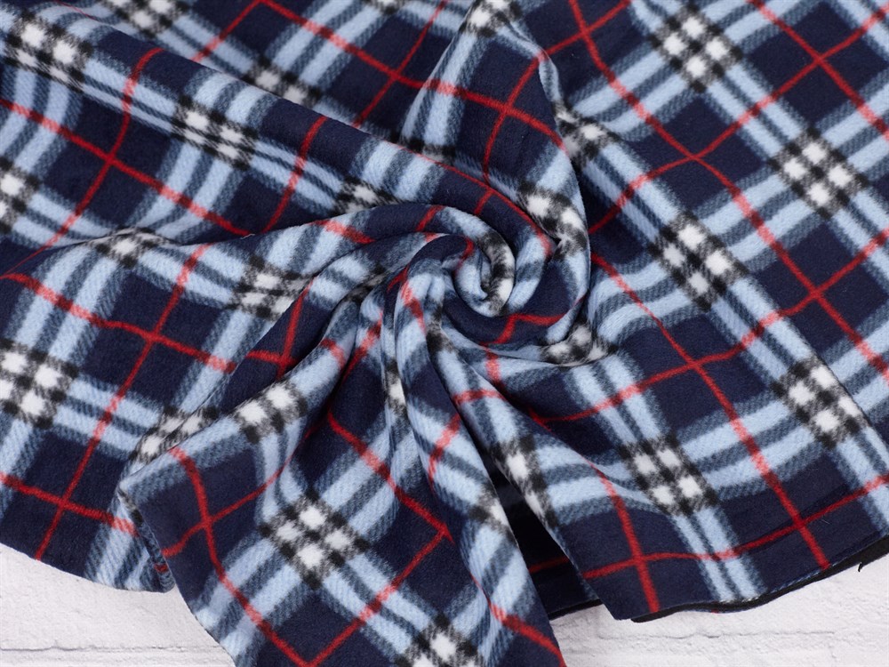 Флис даблфейс антипиллинг, принт "Клетка", цв. синий+красный