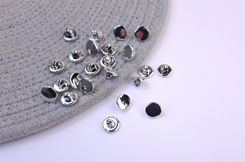 Пуговица на ножке, пластик глянцевый под серебро, 12мм