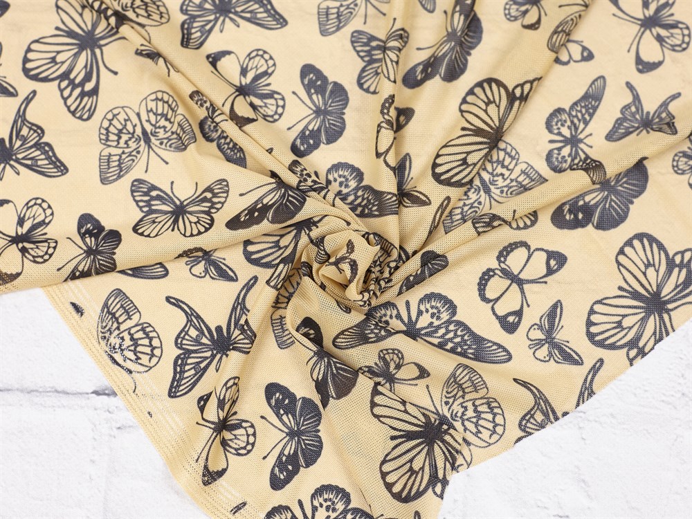 Сетка NUDE, тату-принт "Бабочки", цв. телесный