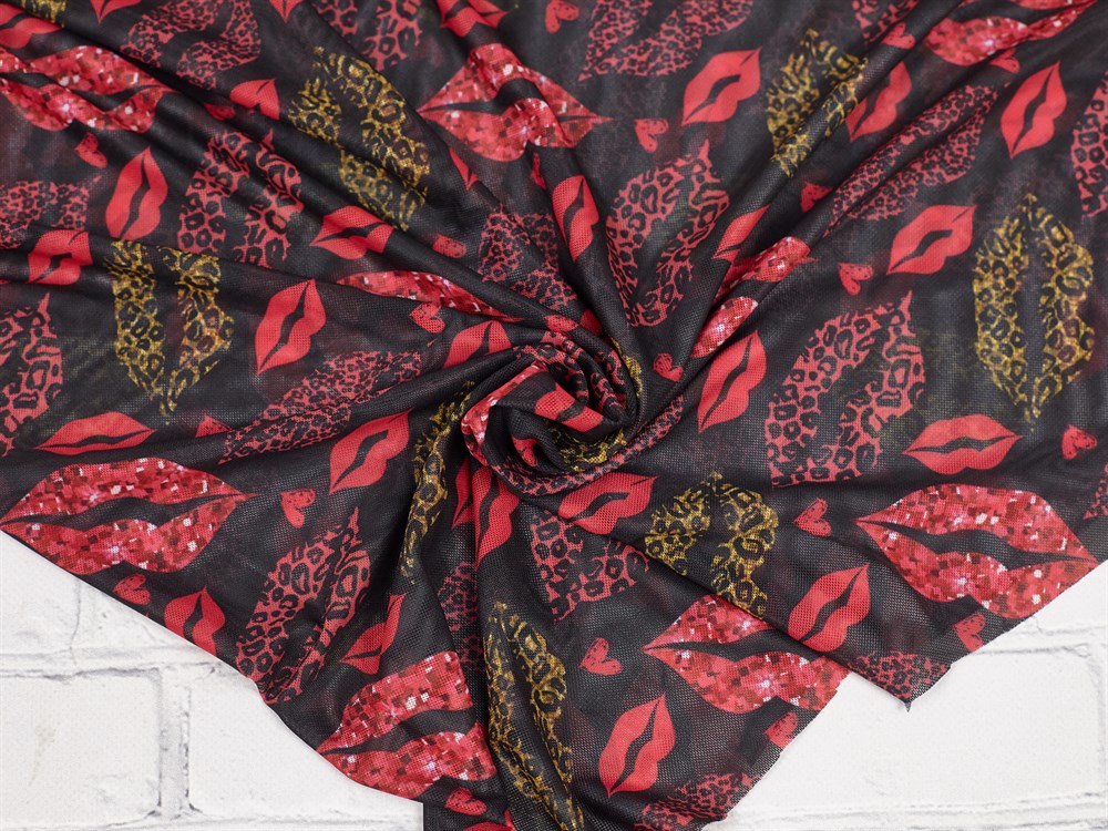 Сетка NUDE, принт "Губы на чёрном"