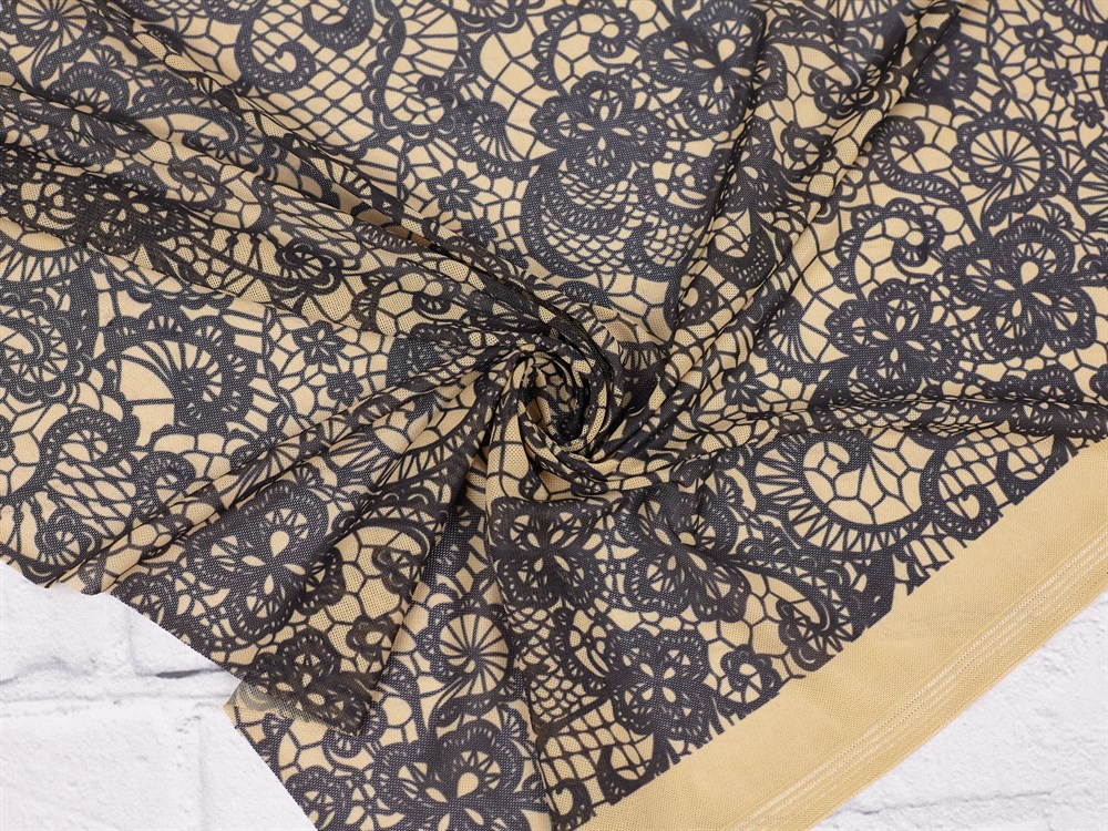 Сетка NUDE, тату-принт "Кружево", цв. телесный