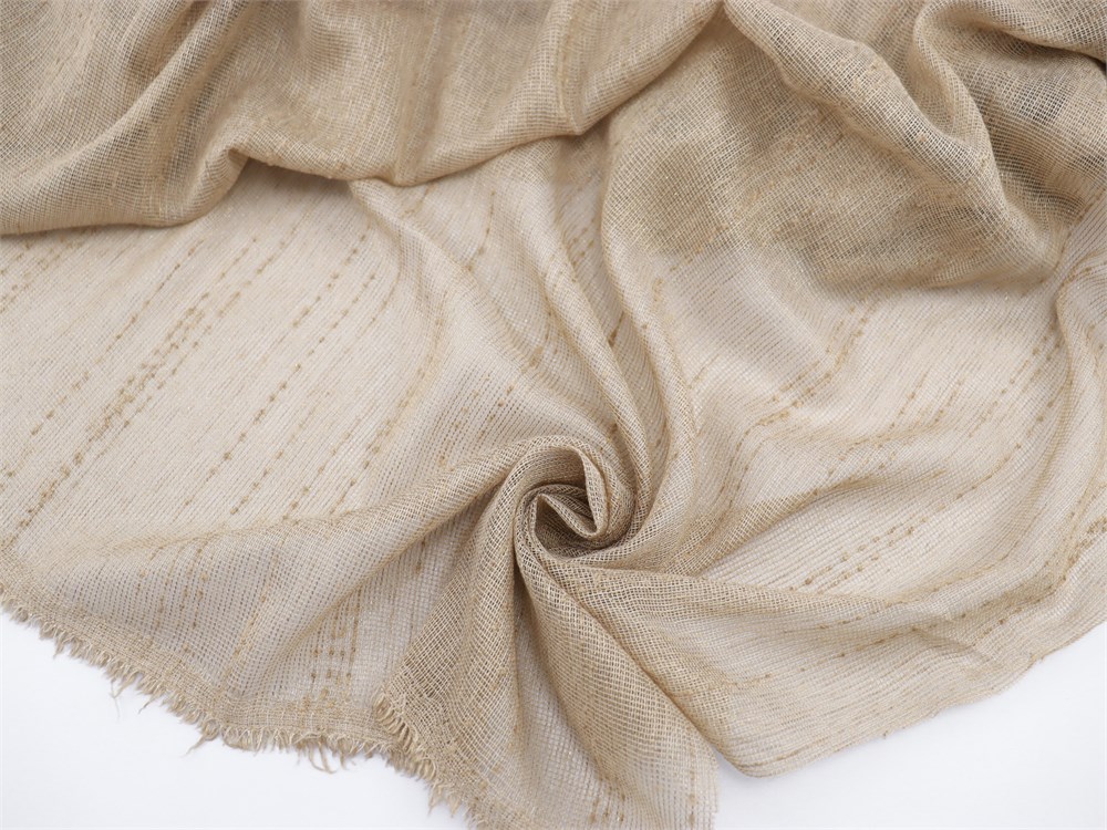 Эксклюзивная новинка, которая имеет эффектный внешний вид с ярко выраженной фактурой похожей на мешковину, а добавленная еле уловимая люрексовая ниточка придает особый изыск ткани. Ткань хорошо держит форму и закладывается в объемные складки. Характеризуется высокими свойствами по воздухопроницаемости и гигроскопичности. Рекомендуется выбирать свободные модели одежды с припуском на свободу облегания. Идеально использовать для юбок, декоративных жакетов и жилетов, бомберов, а также пыльника, который снова в моде, изделие по желанию можно дополнить подкладом. Можно использовать в интерьере и декорировании различий изделий, например сумочек, панам и тд.